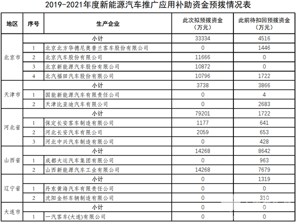 此外,本次还将预拨付2019年-2021年的补贴资金,由于此前大部分车企都收到了相应的预拨付资金,此次下发将扣减已下发的部分,综合来看,本次将实际下发预拨付的补贴资金113亿。