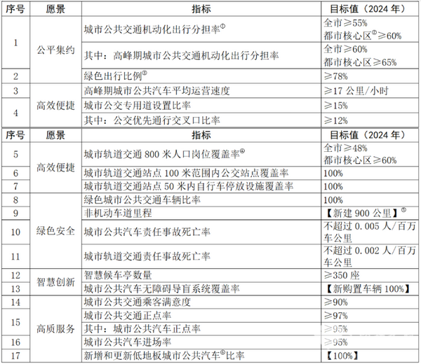 13.健全公共交通服务指数体系。以乘客感知与服务体验为导向,凝聚政府、企业、社会共识,持续优化公共交通经营企业服务质量考核评价标准。健全公共交通服务指数监测评估体系,建立面向社会公众的定期发布机制,推动企业提高管理水平和服务质量,营造健康可持续的公共交通发展环境。