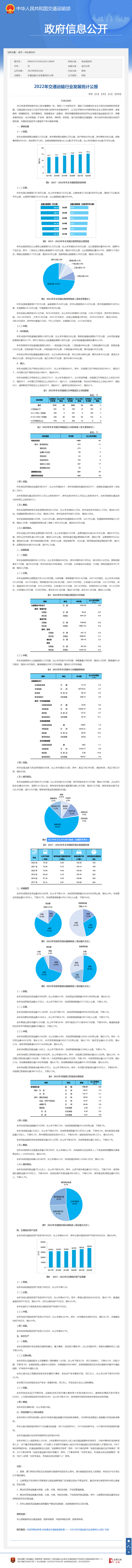 2023年06月16日,国家交通运输部发布了《2022年交通运输行业发展统计公报》。