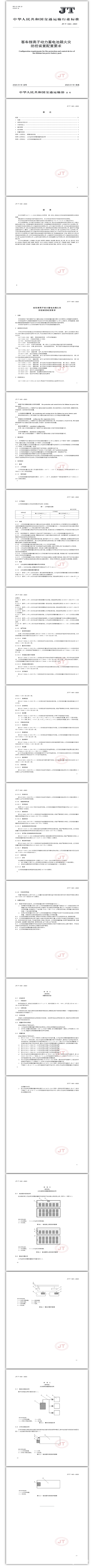 《客车锂离子动力蓄电池箱火灾防控装置配置要求》(JT/T 1461-2023)行业标准,于2023年1月19日由中华人民共和国交通运输部发布,并于2023年7月19日起正式实施。