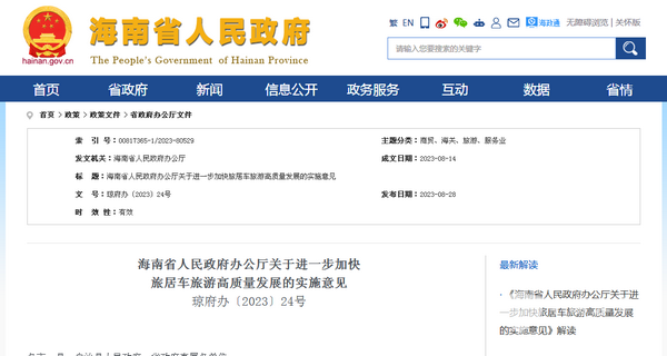 海南省:加快 旅居车旅游高质量发展的实施意见发布