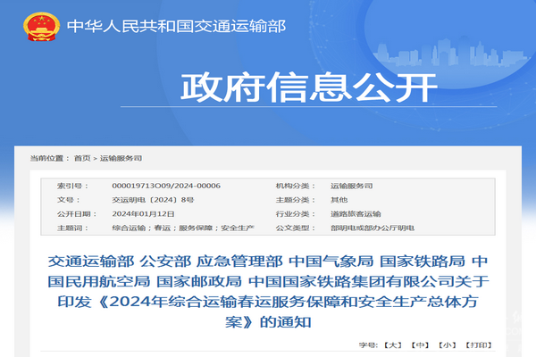 交通运输部发布2024年综合运输春运服务保障和安全生产总体方案