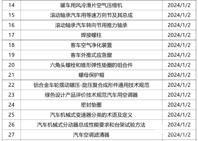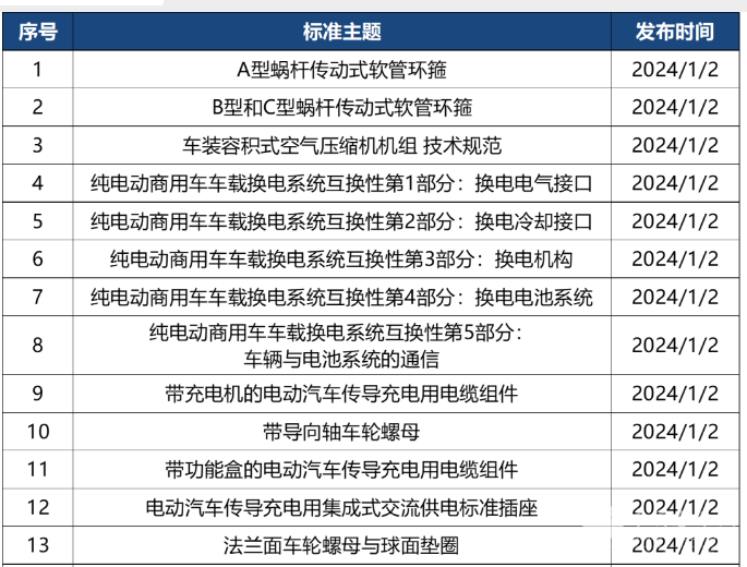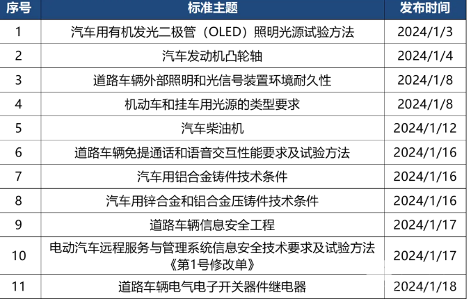 一、2024年1月发布的相关汽车行业标准法规汇总