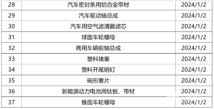 根据2024年1月份各部门发布的标准法规资讯,其中有与汽车相关标准37部,包含零部件、车用电器等。发布标准如下: