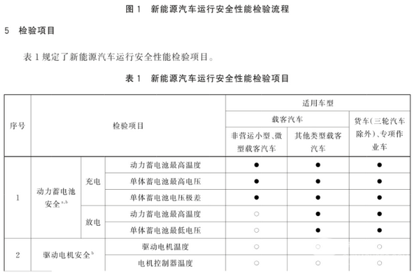 按照《新能源汽车运行安全性能检验规程》(GB/T 44500-2024)新标准的检验要求,新能源汽车的动力蓄电池安全充电检测和电气安全检测将成为必检项目。对于其他类型载客汽车、货车(三轮汽车除外)和专项作业车而言,充电和放电时动力电池的温度和电压都将成为检测项目。