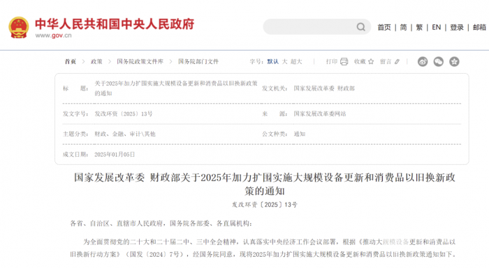 - 关于2025年加力扩围实施大规模设备更新和消费品以旧换新政策的通知[01-09]