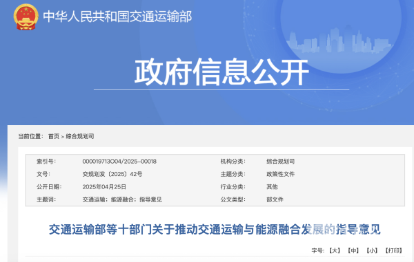 2025年4月25日,交通运输部等十部门发布《关于推动交通运输与能源融合发展的指导意见》,要求推动交通与能源基础设施一体化建设。加快推动枢纽场站清洁能源开发利用。统筹考虑货运枢纽、货运堆场、客运站、公交停车场等智慧化转型升级。
