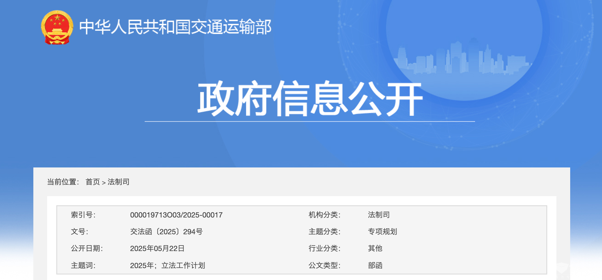 交通运输部关于印发2025年立法工作计划的通知