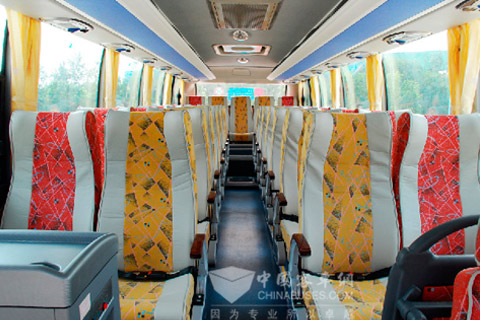 成形内饰,色彩清新明快,高档可调座椅,后排椅顶部空间增加,可选装多片簧或空气悬架;动力转向、离合助力、断气刹,有良好的平顺性和操作稳定性,提高了驾乘舒适性。