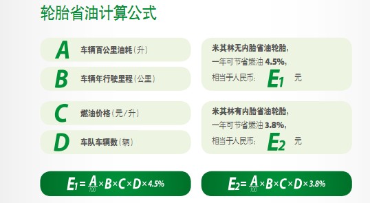 得益于米其林Energy技术在胶料配方、胎体结构设计上的应用,此款轮胎的滚动阻力显著降低。与相同规格的米其林XDE 2+ Energy相比,该款轮胎滚动阻力降低约15%,可为卡客车用户节省约3%的燃油成本。举例来说,如果一个车队拥有60台车辆,假设每辆卡车每年行驶24万公里,如果整个车队都是用米其林省油轮胎,车队每年每台车可节省18900元(假设油耗为35升/公里,油价7.5元/升),这也意味着每年可为车队节省总共超过110万的费用。在一些特定路况和行驶环境下,米其林省油轮胎的使用寿命普遍超过一年,可为用户带来更多的油耗节省。