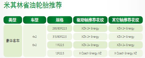 作为中国市场首发的驱动轴专用省油轮胎产品,米其林XDA 2 Energy和XDA 2+ Energy,进一步丰富了米其林省油轮胎产品线。自2006年面向中国卡客车轮胎市场率先推出第一条采用米其林Energy省油技术的轮胎米其林XZA 2+ Energy以来,米其林向中国市场提供的多种不同规格、花纹的卡客车省油轮胎,共计为广大米其林车队用户节省了超过一亿升燃油,碳减排近24万吨,相当于种植了728万棵成年树木。作为卡客车省油轮胎市场的开拓者和引领者,米其林不断丰富自己的省油轮胎产品线,目前能够提供8个规格、6种花纹的卡客车省油有内胎和无内胎轮胎产品,满足包括中长途高速客运、货运以及城市公交运输在内的不同行业对省油轮胎的需求,不仅为用户带来可观的经济效益,更为社会创造了巨大的环保效益。
