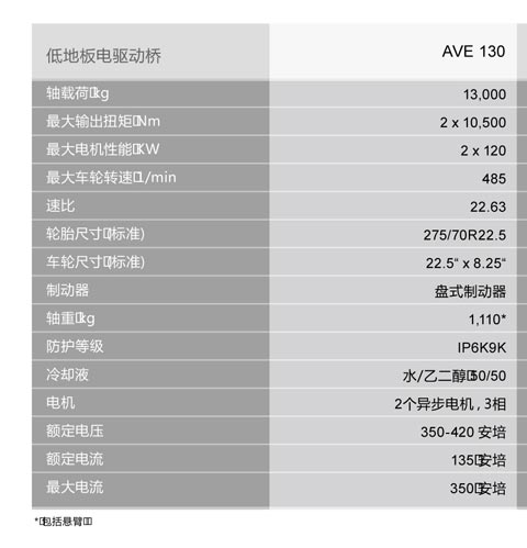 采埃孚低地板电驱动车桥AVE130 参数配置