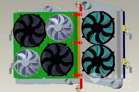 同时将各换热器(中冷器、散热器)独立化布置,在散热器进出水口、中冷器出气口,均装配专用的独立式温度传感器,以此保证发动机进水、进气温度始终保持最佳状态。