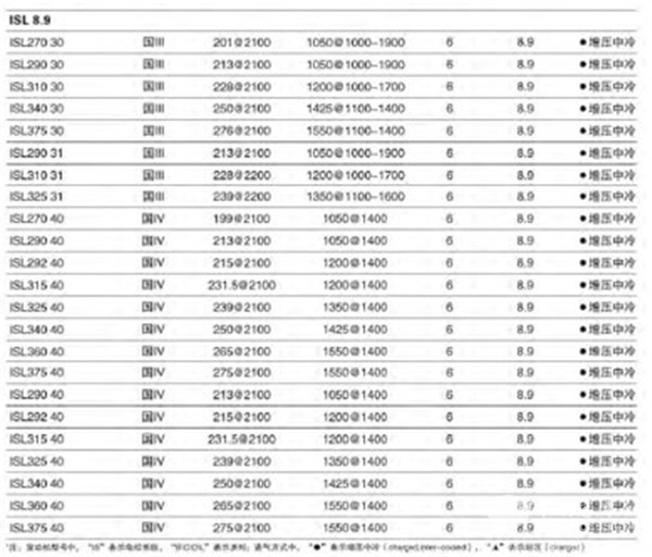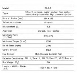 东风康明斯ISL8.9系列发动机参数配置