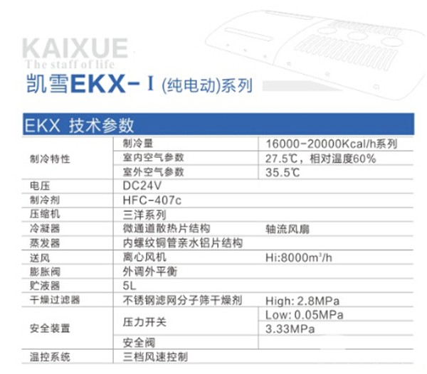郑州凯雪EKX-Ⅰ(纯电动)系列空调参数配置