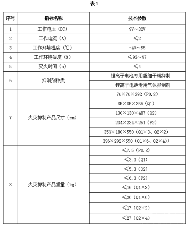 我公司所有火灾抑制产品上使用的容器阀均为自主知识产权,驱动源为非气压式,不存在压值波动问题,性能稳定,结构简单,抑制剂喷出可靠性高。且具有阀门自动打开和人工手柄应急打开两种方式,操作方便,主要技术参数见表1: