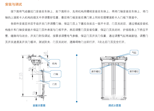 3.车门开启度大,无毛刷密封性好,并具有较好的防水,防寒保温效果。