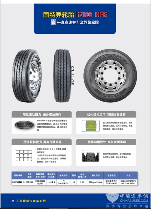 固特异S100 HFE平直高速客车全轮位轮胎参数配置