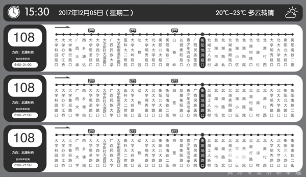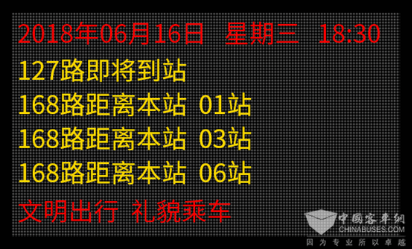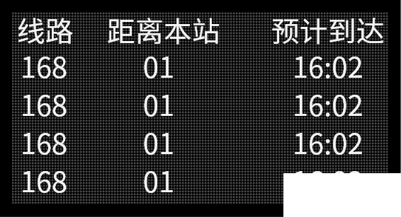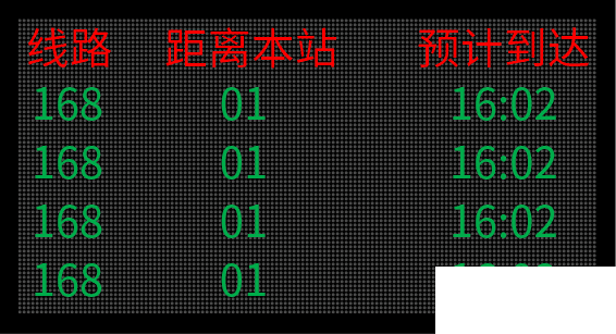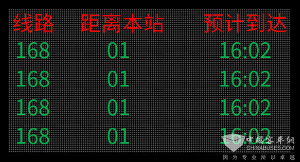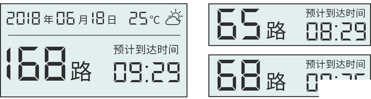 双字LED预报站显示,可实时显示车辆到站信息,距离本站还有几站,低功耗、易安装等。