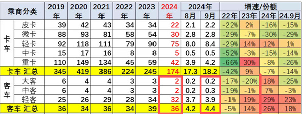 截图1,2024年9月及1-9月国内大中轻客车销量(数据来源:中国汽车流通协会提供的上牌信息)
