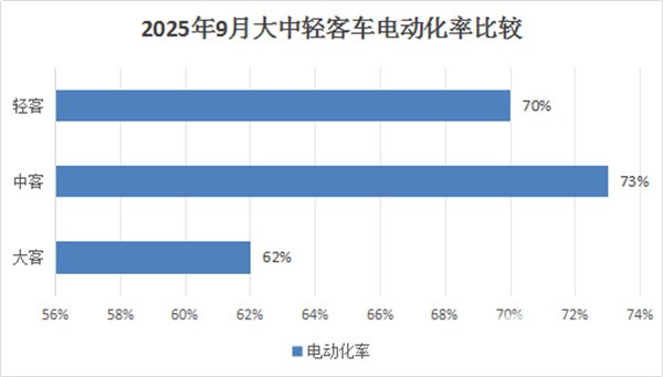 特点四、9月中客新能源化率达到73%,居大中轻各细分市场最高
