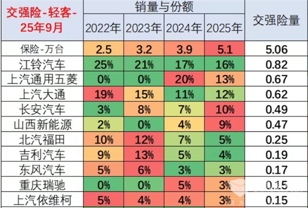 截图4,2025年9月国内轻型客车TOP10车企销量(数据来源:中国汽车流通协会提供的上牌信息)