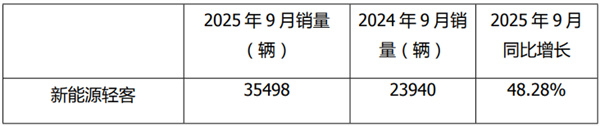 表1,2025年9月新能源轻客同比增长48.28%(数据来源:终端上牌信息)