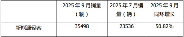 表2,2025年9月新能源轻客环比增长50.82%(数据来源:终端上牌信息)