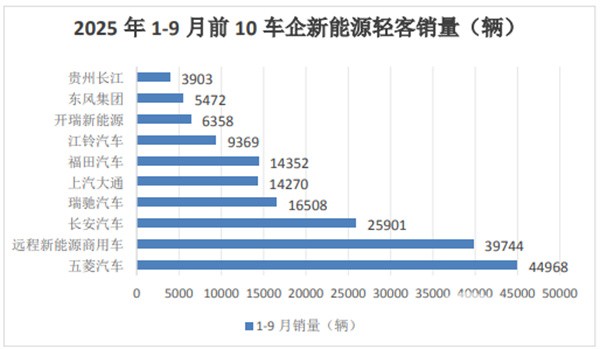 上图表显示,在2025年1-9月新能源轻客累计销量中: