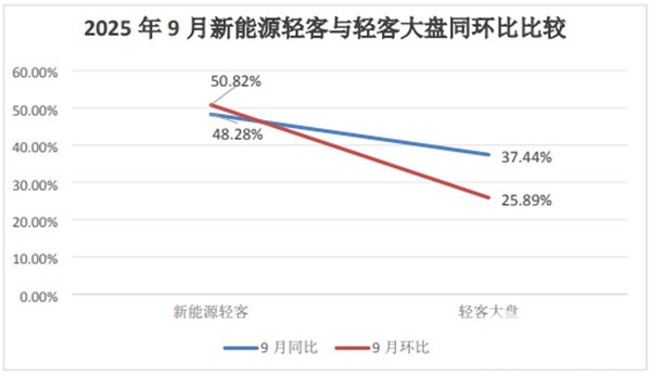 而2025年9月国内新能源轻客销售3.55万辆,同比增长48.28%,环比增长50.82%,均跑赢今年9月国内轻客大盘同环比增速(同环比增速分别为37.44和25.89%);成为推动2025年9月国内轻客市场同环比增长的主要动力。