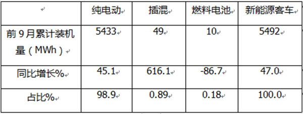 二、9月及前9月新能源客车动力电池装机量整体情况简析