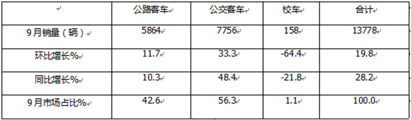 特征四、9月公交客车、公路客车、校车“黑马”分别是海格客车、安凯客车及安凯客车;1-9月公交及公路客车、校车”黑马”分别是:金龙、安凯客车和安凯客车