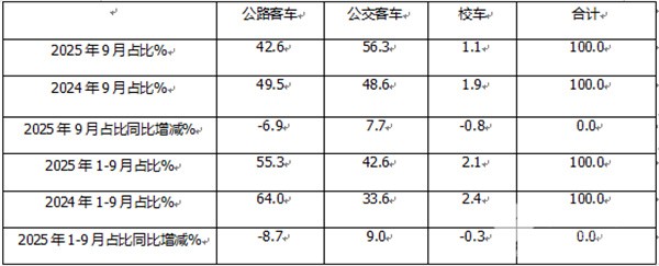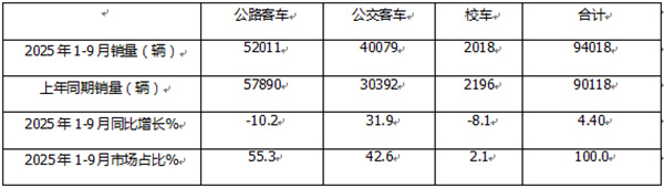 那么2025年9月及1-9月公路、公交和校车三大细分市场销量有何主要特点?现予以简要分析。