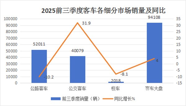截图1,2025年前三季度我国客车各细分市场销量及同比增长(数据来源:慧眼看车)