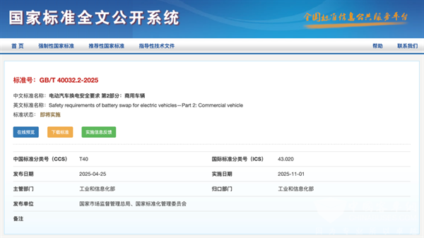三、工信部:《电动汽车换电安全要求 第2部分:商用车辆》将实施