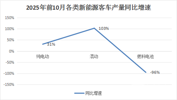 四、2025年前10月各技术路线新能源客车装机量中,混动领涨