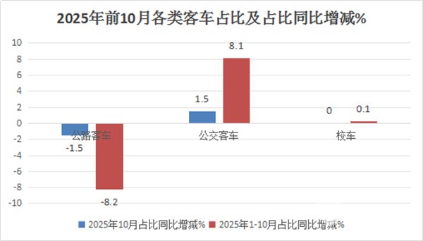 上图表可见,在2025年1-10月5米以上公路、公交、校车三大细分市场中:
