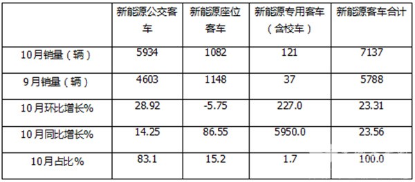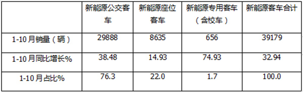 - 10月新能源座位客车:销1082辆 同比大涨环比小降 宇通强势霸榜