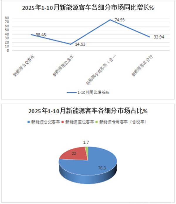 总之,新能源公交客车成为2025年10月“大中型新能源客车市场中销量最大、同比跑输、环比跑赢大盘的细分车型。