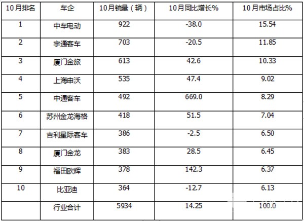 - 10月大中客车:宇通霸榜 中车杀入前三 欧辉“双领涨”