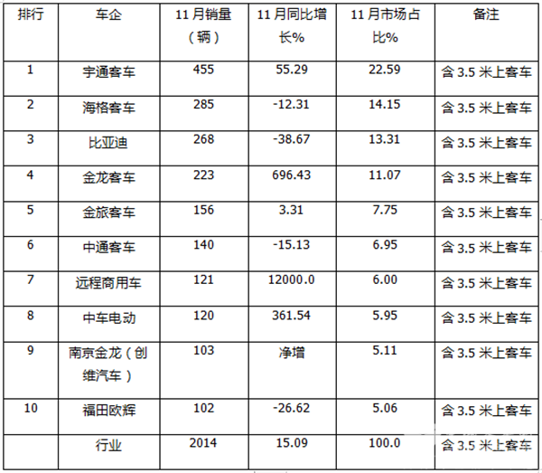 - 11月新能源客车:同环比双增创新高 宇通霸榜 中车\金龙分列二三