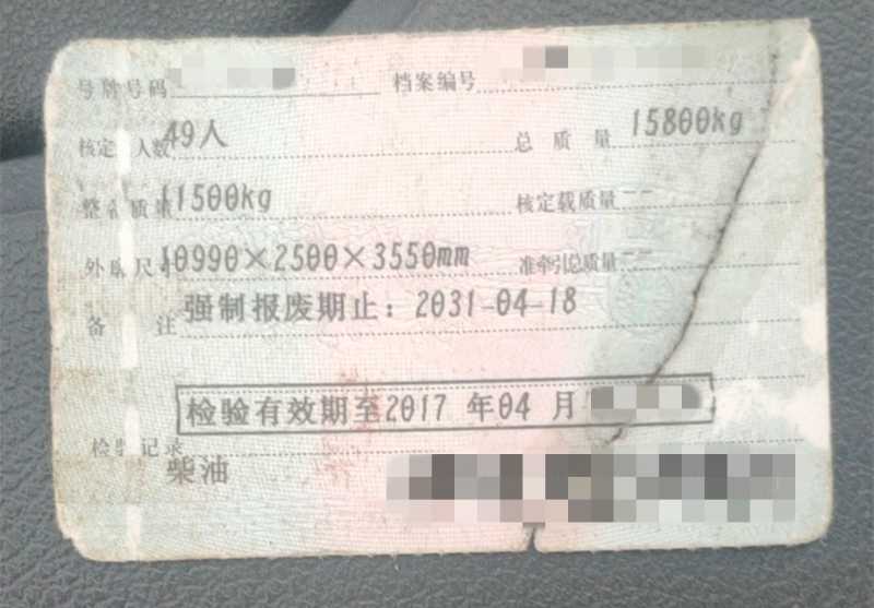 | 客车品牌 | 宇通客车 | 上牌时间 | 2016-04-18 |