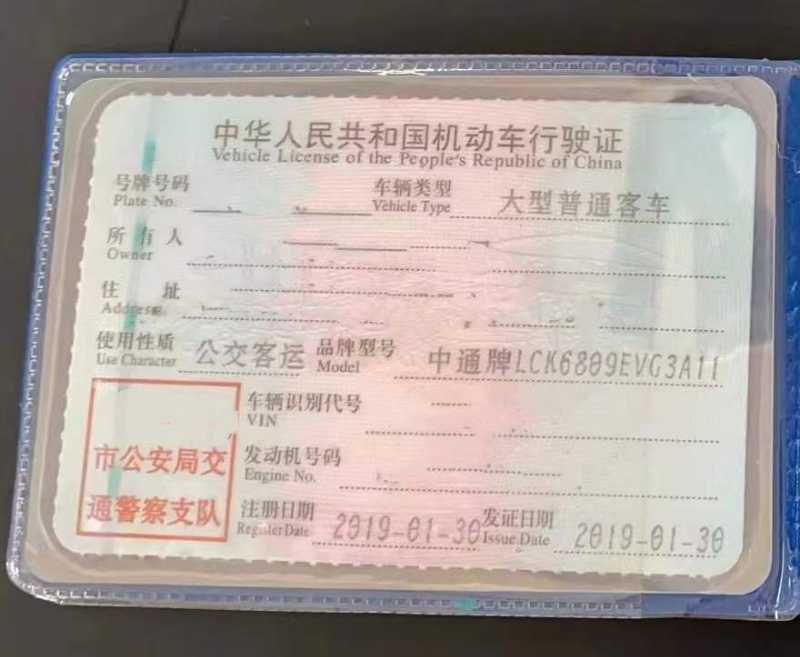 | 客车品牌 | 中通客车 | 上牌时间 | 2019-01-15 |