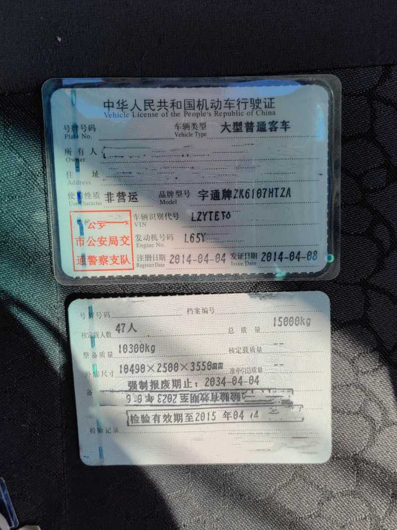 | 客车品牌 | 宇通客车 | 上牌时间 | 2014-04-22 |