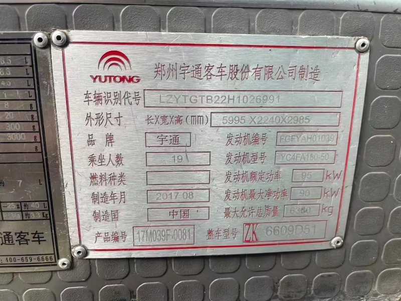 | 客车品牌 | 宇通客车 | 上牌时间 | 2017-08-17 |