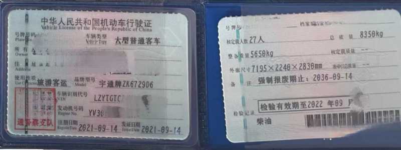 4台国六全国飞,2021年9月上牌宇通27座旅游车