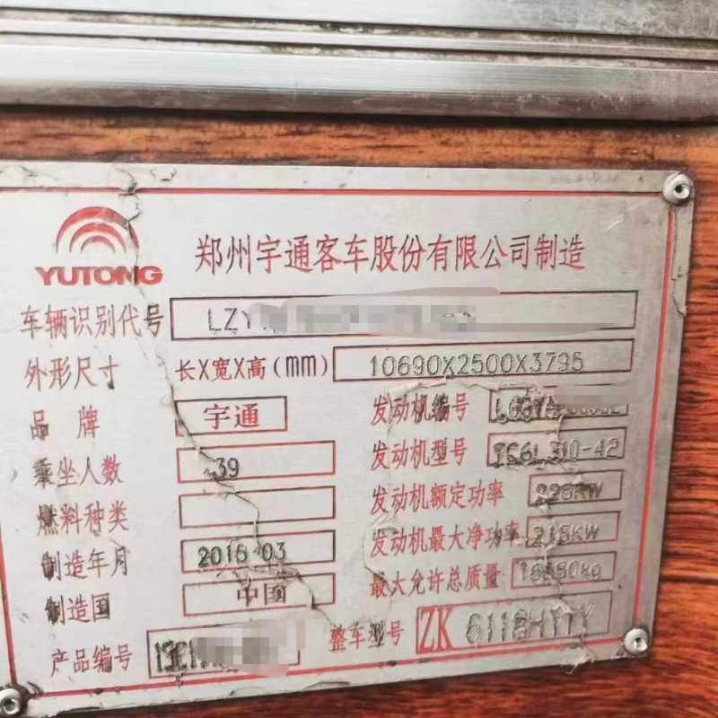 | 客车品牌 | 宇通客车 | 上牌时间 | 0000-00-00 |