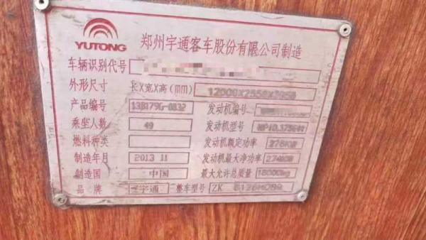 | 客车品牌 | 宇通客车 | 上牌时间 | 2013-12-19 |