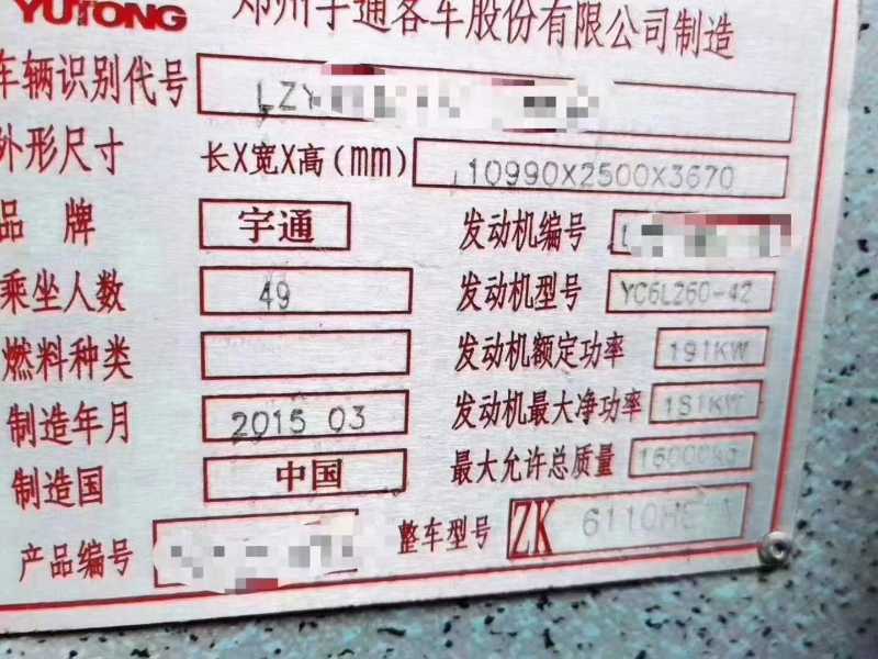 | 客车品牌 | 宇通客车 | 上牌时间 | 2015-04-14 |