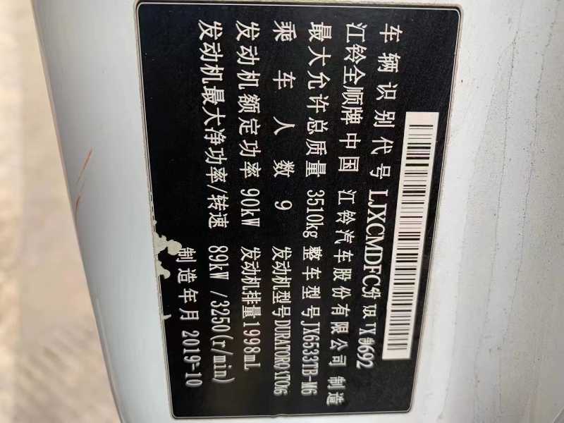 | 客车品牌 | 江铃全顺 | 上牌时间 | 2020-05-15 |